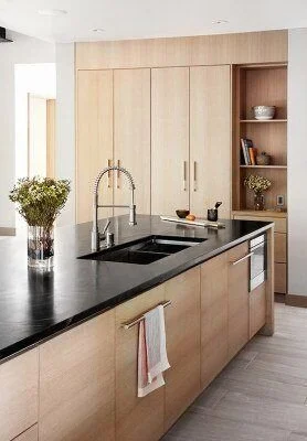 Blonde wood cabinets combined with a dark countertop makes the space sleek and modern. A close up of our natural finish on maple wood cabinets. David howell design , tribeca loft, new york / 4. The natural blonde wood of this floor accents the white cabinet, while contrasting the bright warm wood of the island. Birch, ash, beech, and light maple cabinets offer an organic element for homeowners that brighten the environment without overpowering the design.